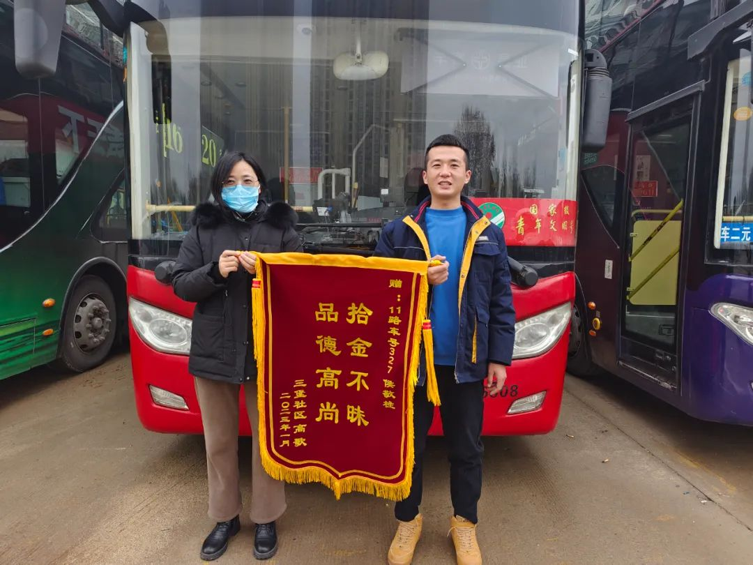 1月18日下午,市民高女士來到銅山新區(qū)停車場,將一面錦旗交給了車隊工作人員。高女士說,之前在乘坐公交車時,因著急下車,不慎將手提包遺落在了11路車上。幸虧駕駛員候敬柱打掃車輛衛(wèi)生時,在車廂里發(fā)現(xiàn)了手提包,立即交至調(diào)度室,平臺調(diào)度便試著將包打開,發(fā)現(xiàn)了夾在平板電腦里的準(zhǔn)考證,并根據(jù)上面的電話號碼聯(lián)系到了高女士。