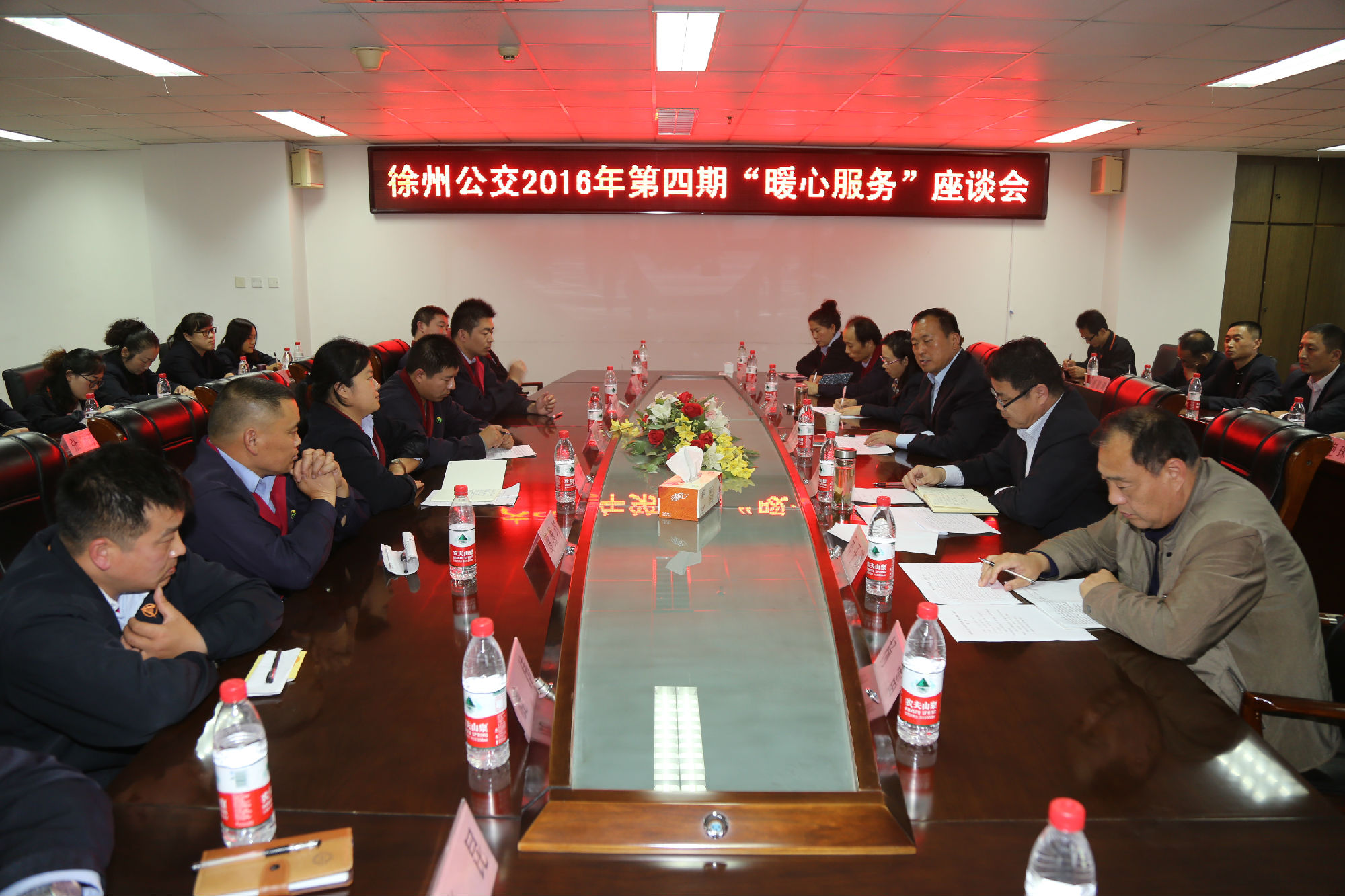 今年以來,全公司深入開展文明城市創(chuàng)建工作,各單位積極參與,強化員工培訓(xùn)、加大檢查力度、制作公益廣告,營造濃厚的創(chuàng)建氛圍,服務(wù)質(zhì)量也不斷提升,與去年同期相比,今年駕乘人員暖心服務(wù)受到媒體表揚、乘客來信來電表揚的數(shù)量大大增加。為進一步培樹典型,弘揚企業(yè)正能量,扎實做好創(chuàng)建工作,也為大家提供一個交流切磋的平臺,10月20日公司舉辦了第四期“暖心服務(wù)”座談會。